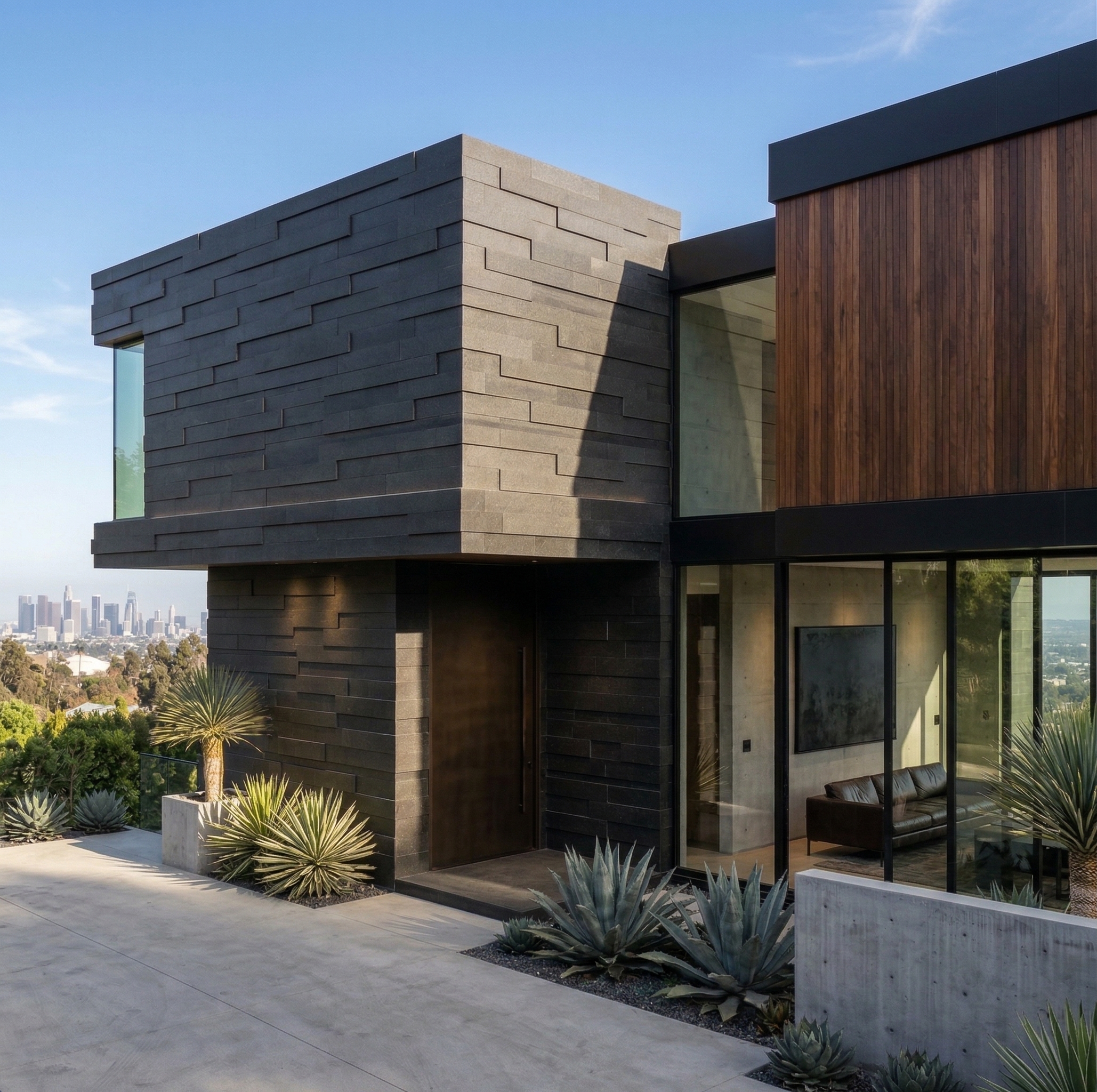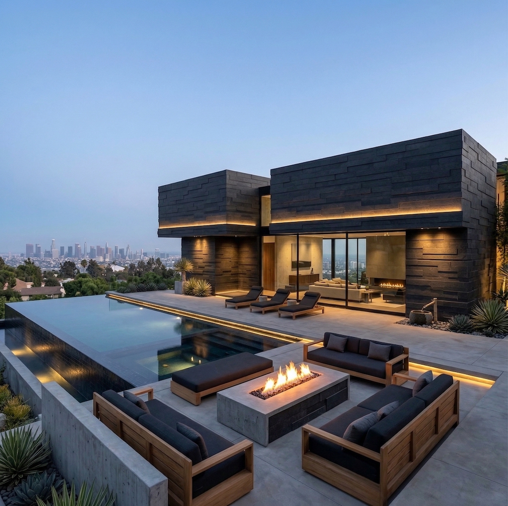 Pacific Black is a consistently dark, fine grained basalt formed by the rapid cooling of ancient lava beds. A smooth Honed finish is applied and the stone is crafted into three different thicknesses to create an innovative pattern.